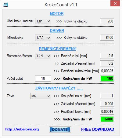 Jelikož jsem stále dotazován na přepočty kroků/mikrokroků a na fóru se tyto dotazy také opakují, tak jsem se rozhodl napsat jednoduchou a snad přehlednou aplikaci. Nejsem programátor, ale tak nějak pro osvěžení mozku jsem to v C# slátal :D