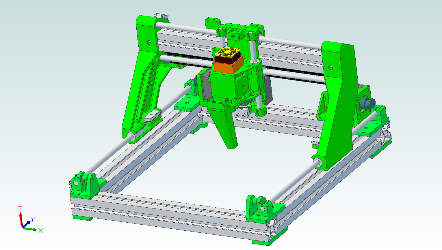 - 4 vodící tyče os X/Y (2x310mm (lepe 330mm) a 2x365mm)
