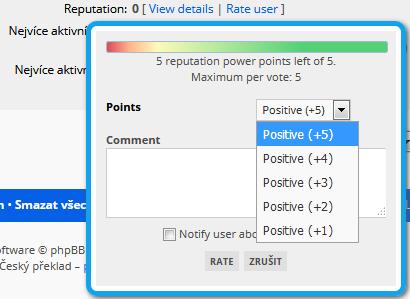 Už to vidím, pro udělení záporného hodnocení je mimo jiné potřeba mít aspoň 10 bodů kladného hodnocení. Jednorázově jsem ti je tedy přidělil, protože si myslím, že si je zasloužíš. Pokud má tedy reputační systém nějako fungovat a mít smysl, tak jej musíte používat.