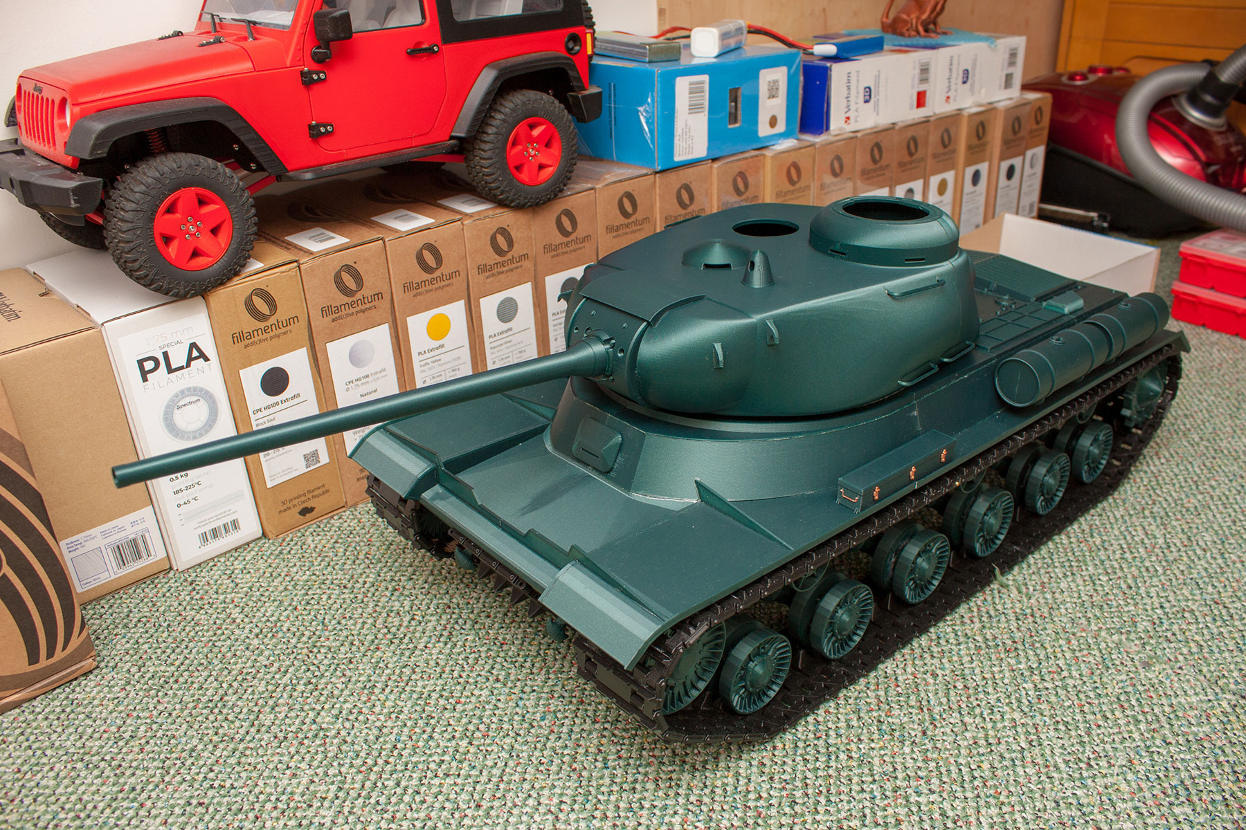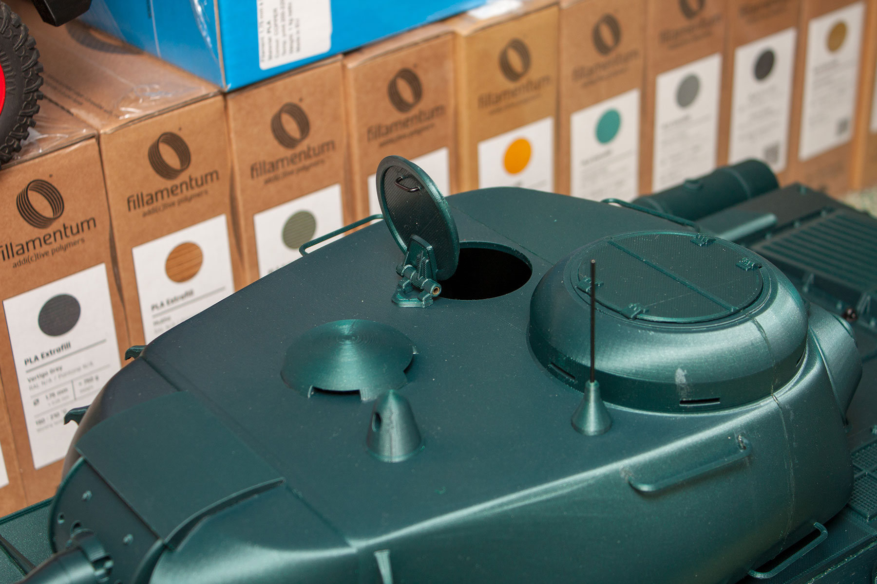 Toto nastavení mám standardně na vše, pouze výplň nižší. A tisknu i na 80 mm/s, akorát při 230°C a nekomplikované větší díly. Problémem pak je velké pnutí při chladnutí, takže tenké věci, jako je třeba ta věž tanku, by se zkřivily. Tiskárny jedou průměrně 5,5 m filamentu za hodinu, na tank jsem spotřeboval 1650 m, to je 300 hodin tisku.