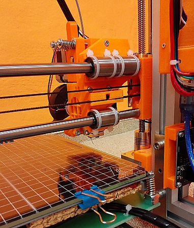 Rebel II: HotEnd: E3Dv6 d0.4 mm, heated bed: MK3 ALU + sklo + Ultem PEI, ložiska: LM8UU MTM, osa Z: M5, HW: Arduino MEGA 2560 R3 + Ramps 1.4 + DRV8825, firmware: Repetier 0.92.9