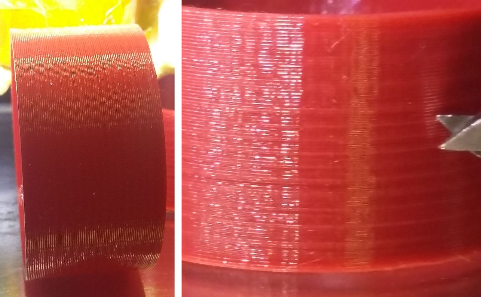 Flow už mám vcelku vyladěný, méně už špatně zavírá horní vrstvu. Co se týče výšky vrstvy - jasně, tohle problém být může (stačí, aby se špatně potkalo mikrokrokovaní a je to problém), ale když mám takhle hezky reprodukovatelnou chybu, je to škoda nevyužít k odladění :-)