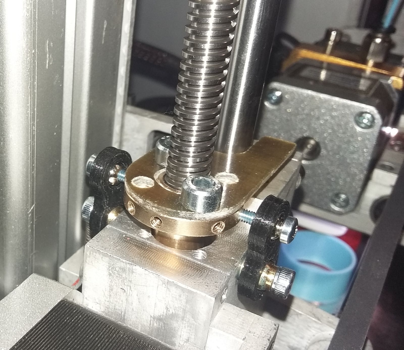 Pre zaujímavosť - uloženie osi Z. Guličky z modelárskych čapov - púzdra vytlačené tak aby sa guľičky voľne otáčali. celá os Z je zavesená na čapoch - podstatne sa zlepšila tlač.