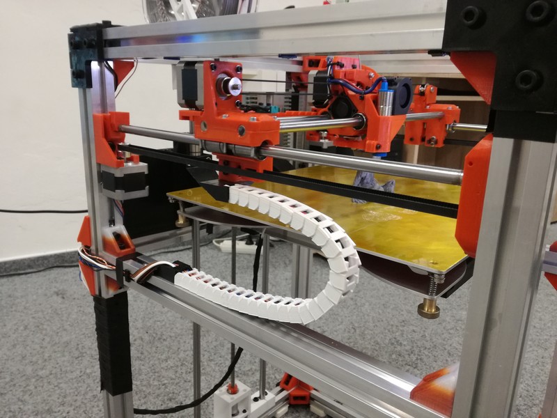 Rebel II: HotEnd: E3Dv6 d0.4 mm, heated bed: MK3 ALU + sklo + Ultem PEI, ložiska: LM8UU MTM, osa Z: M5, HW: Arduino MEGA 2560 R3 + Ramps 1.4 + DRV8825, firmware: Repetier 0.92.9