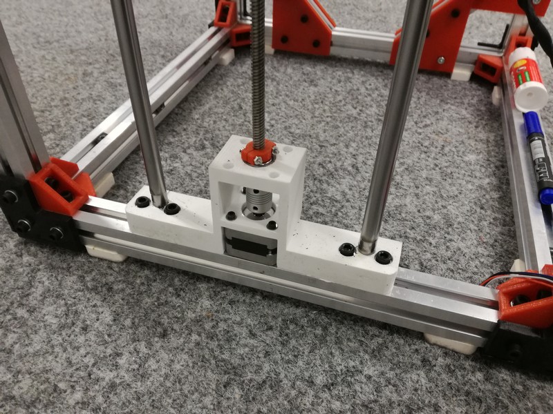 Postupně se už hromadilo spousta dílů a muselo se začít skládat. Osu X a Y jsem nechal na 10mm tyčích, osa Z je z 12mm tyčí a proto se osa Z musela upravit. Celkem trochu, ale později při stálých vibracích stolu muselo přijít další zpevnění.