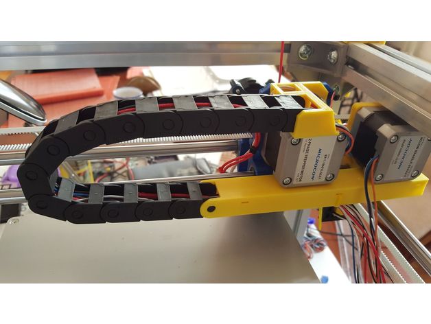 Vytiskl jsem si kabelový řetěz, ale nebylo to úplně ono, tak jsem objednal řetěz z Aliexpresu a předělal pro něj oba konce. Publikoval jsem to na Thingiverse - https://www.thingiverse.com/thing:3436326