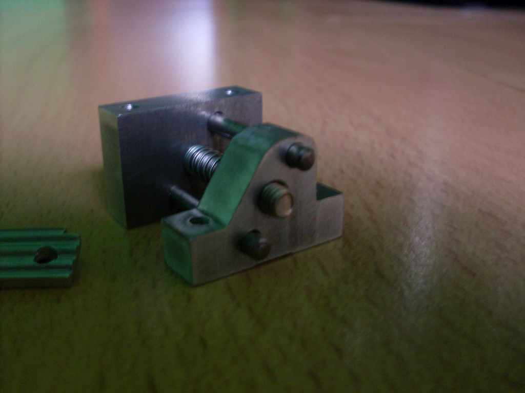 tento týždeň som mal času tak som si vyrobil napináčik na os Y.bez obidvoch čelustí a skrutiek, ktoré ich držia má 19 gramov.je robený podla rozmerov pôvodného kusu z Rebela.rezal som to na drátoreze.nastavovacia skrutka je M4, závit pre ňu je vyvložkovaný v-coilom.pružinka z pera