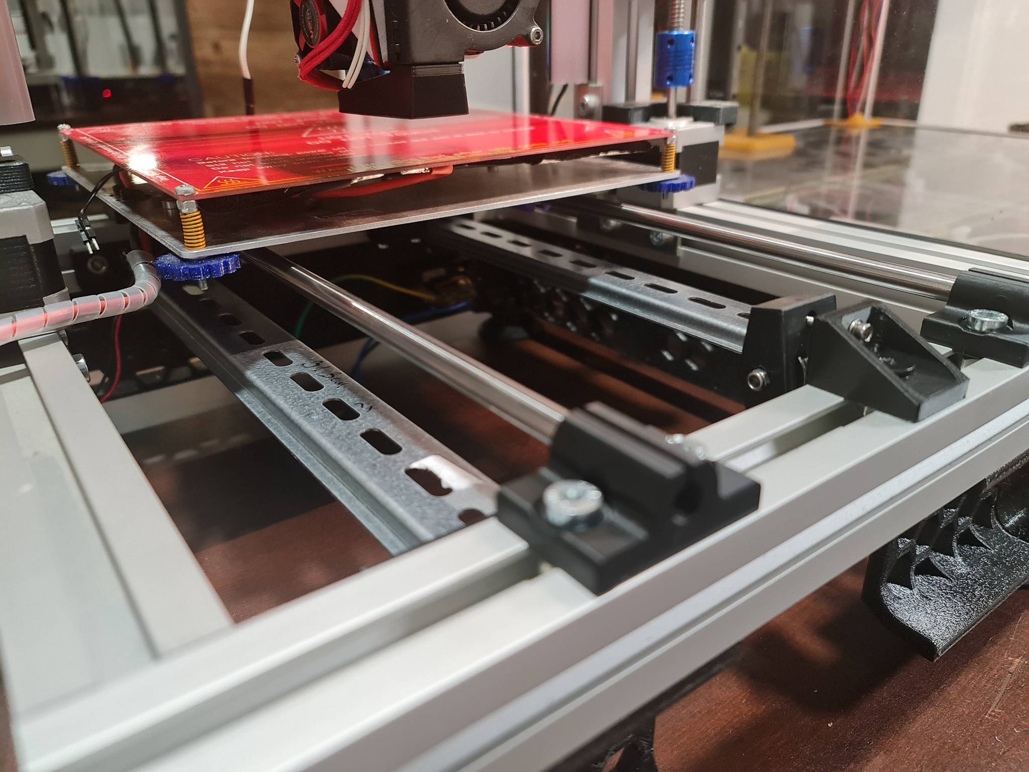 Bed jsem pridelal na lineary neb me opet dost tocilo, ze se mi nedari najit dobra kluzna loziska a zaroven dostatecne dobre vyladit vsechny ty tahove sily ktere vzniknou dotazenim vsech komponent bedu dohromady a zpusobi, ze bed bud jezdi hladce nebo mizerne... nebylo to zle... 100mm/s rychlosti to zvladalo, ale lineary jsou uplne jina liga :-)