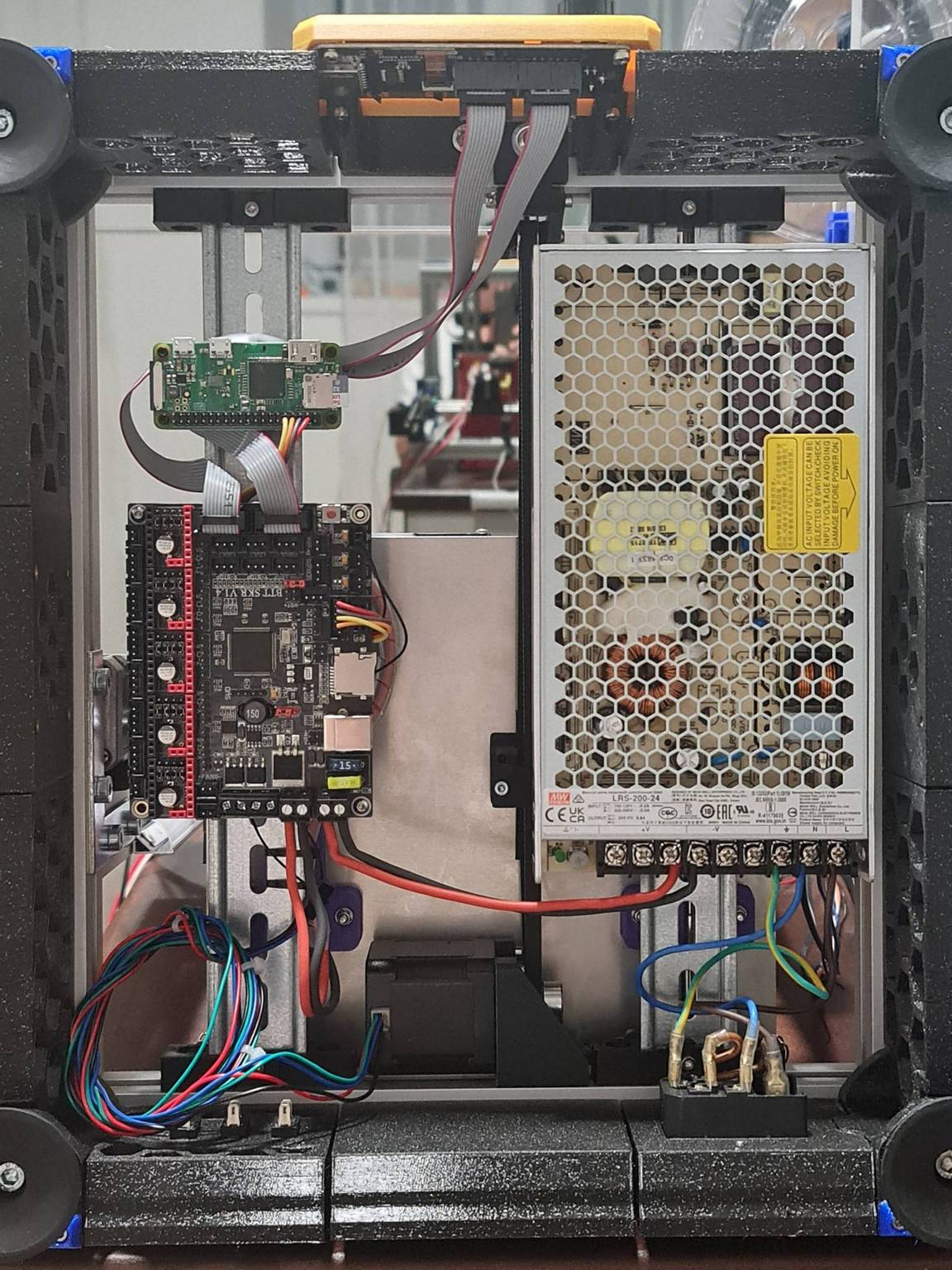 Zacina to vypadat dobre... do te spodni casti se to vsechno tak tak, ale akorat vejde... zdroj, male RasPi Zero W, menim Ardu/Ramps za SKR 1.4 Turbo. Menim ale taky motory pro X/Y a tak se mi ta prestavba trosku prodluzuje. Musim predelat komplet dratarinu a nejak to sikovne vsechno vyvest dolu pod HB, coz bude chtit nejspis jeste nejake dalsi podpurne plastove dilky, ktere ty draty budou drzet pekne na svem miste.