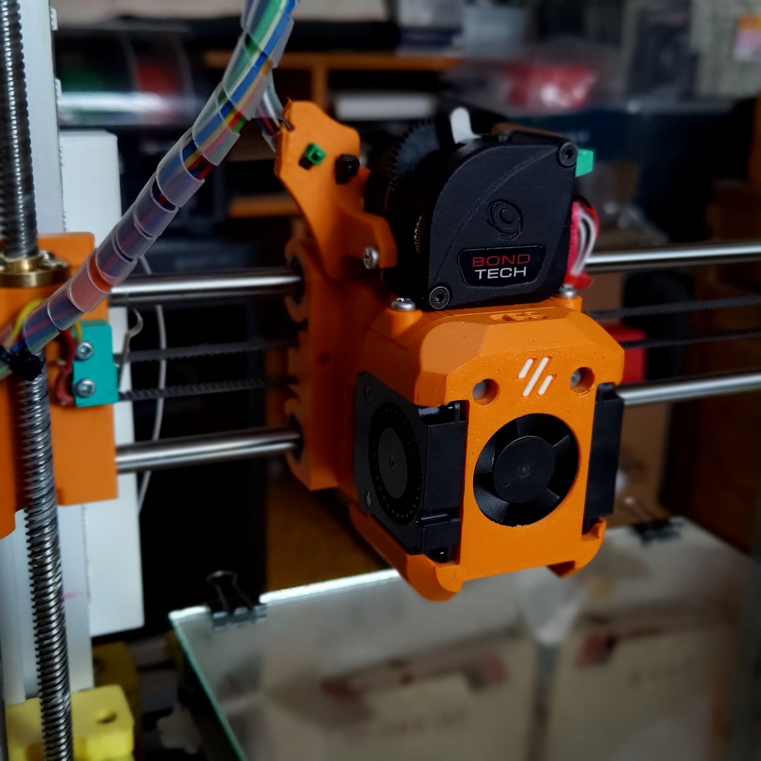 Co do navrhu novych dilu, na toolhead to byl uchyt na Prusa-klon voziku plus trochu upraveny vozik a ostatni veci jako Y motor mount, napinak Y, upevneni 2020 profilu k 3030 profilum, vsechno jsem si delal sam.