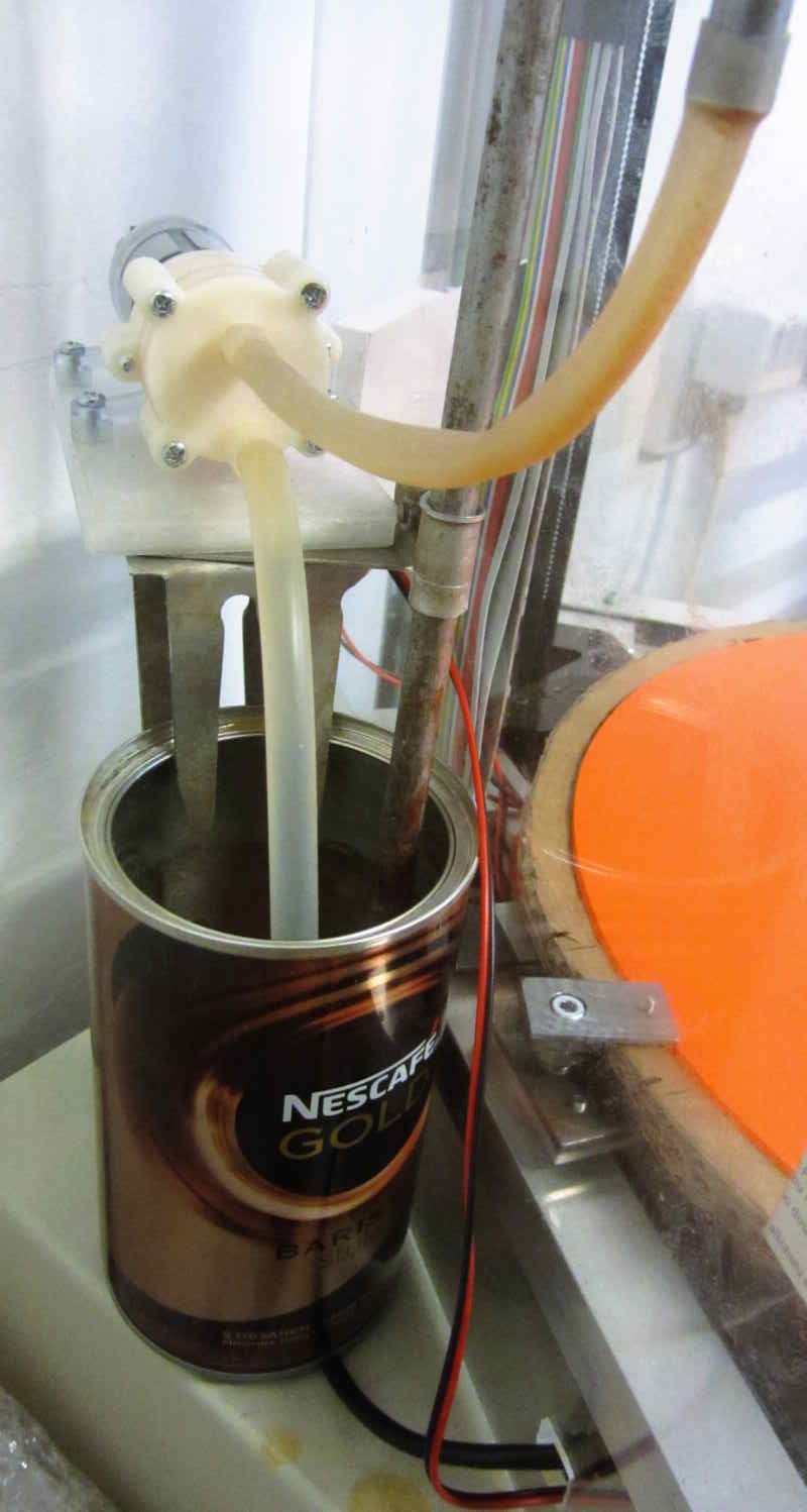Dovedl bych si představit 2 silikonové hadičky 3/5 nebo 4/6 od plastové nádržky nad tiskárnou, ze které to samotíží poteče do extruderu a vracet se to bude ale až na úroveň "podlahy" tiskárny do větší nádrže (klidně plechové, nechť se to tam ochladí). V té by stálo čerpadlo do fontánky (klidně to nejmenší, či nejlevnější co je k mání), které by to čas od času vytlačilo do té horní nádržky (plovákový spínač v horní nádržce).