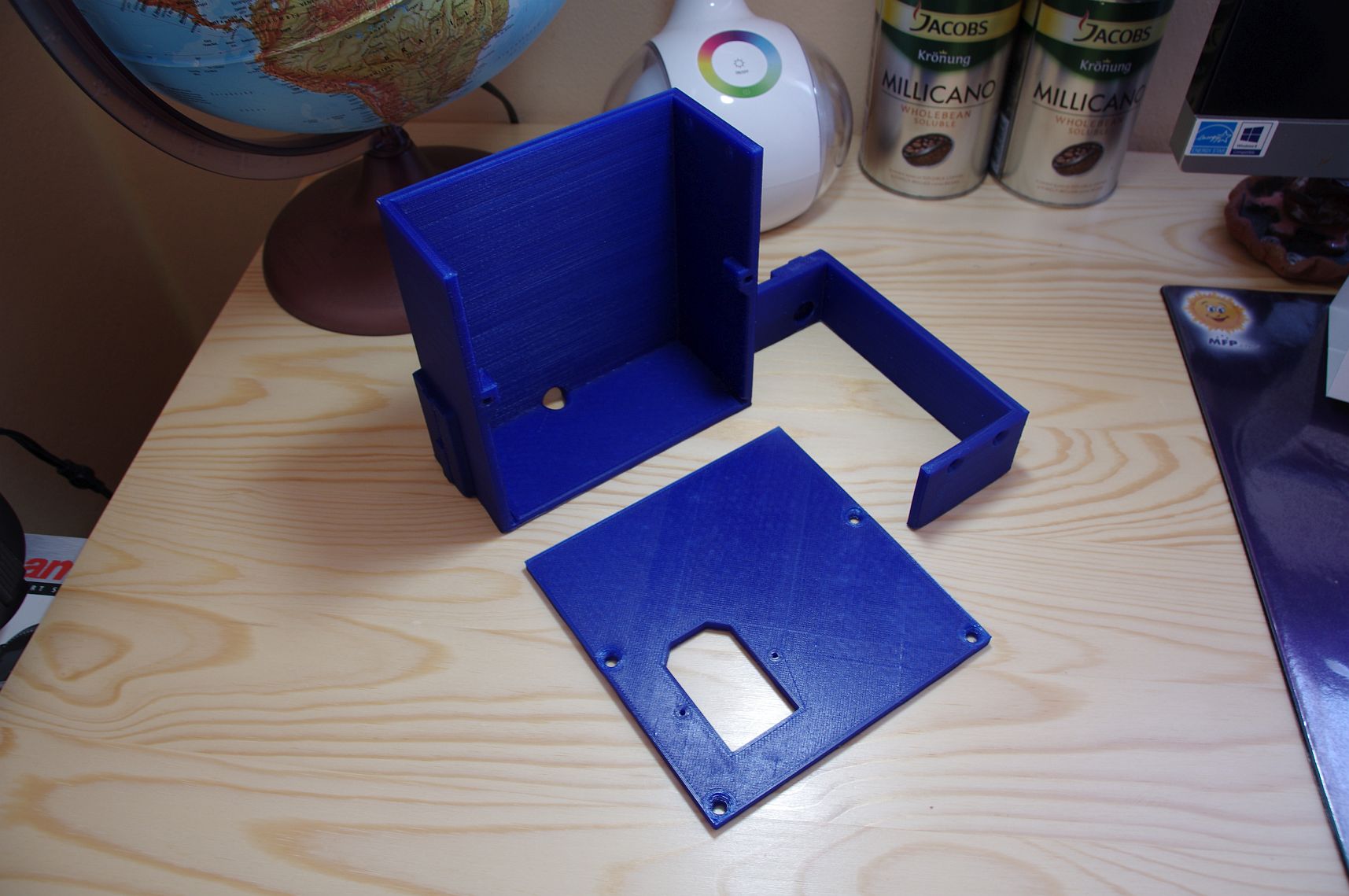 jelikoz jsem se pri stavbe meho rebela tak uplne nedrzel navodu, tak pouzivam trochu jiny zdroj (360W viz odkaz, totalne zbytecne moc silny, napaji jen 40W hotend a elektoriniku :-)) a potreboval jsem pro nej drzak a zaroven prostor kam bych schoval SSR rele pro ovladani moji 220V podlozky. Tak jsem se pokusil si navrhnout svuj, je predimenzovany a opravdu velky, ale snazi jsem se alespon trochu priblizit designu rebela jako takoveho a zaroven aby dily byly co nejednodussi na tisk. Davam to sem, kdyby se to nekomu hodilo.