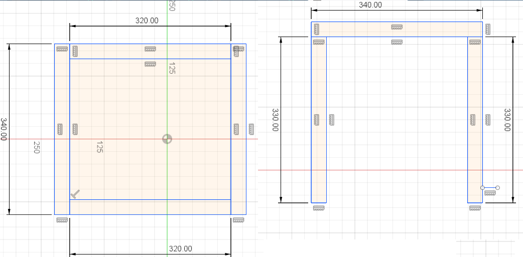 Co se týče těch profilů, tak jsem jel podle oficiálního návodu k rebelu II a vyšlo mi tohle schéma, svislým 330mm jsem tedy nepřidával, ale mohl jsem se seknout, nikdy jsem tuhle tiskárnu nestavěl.