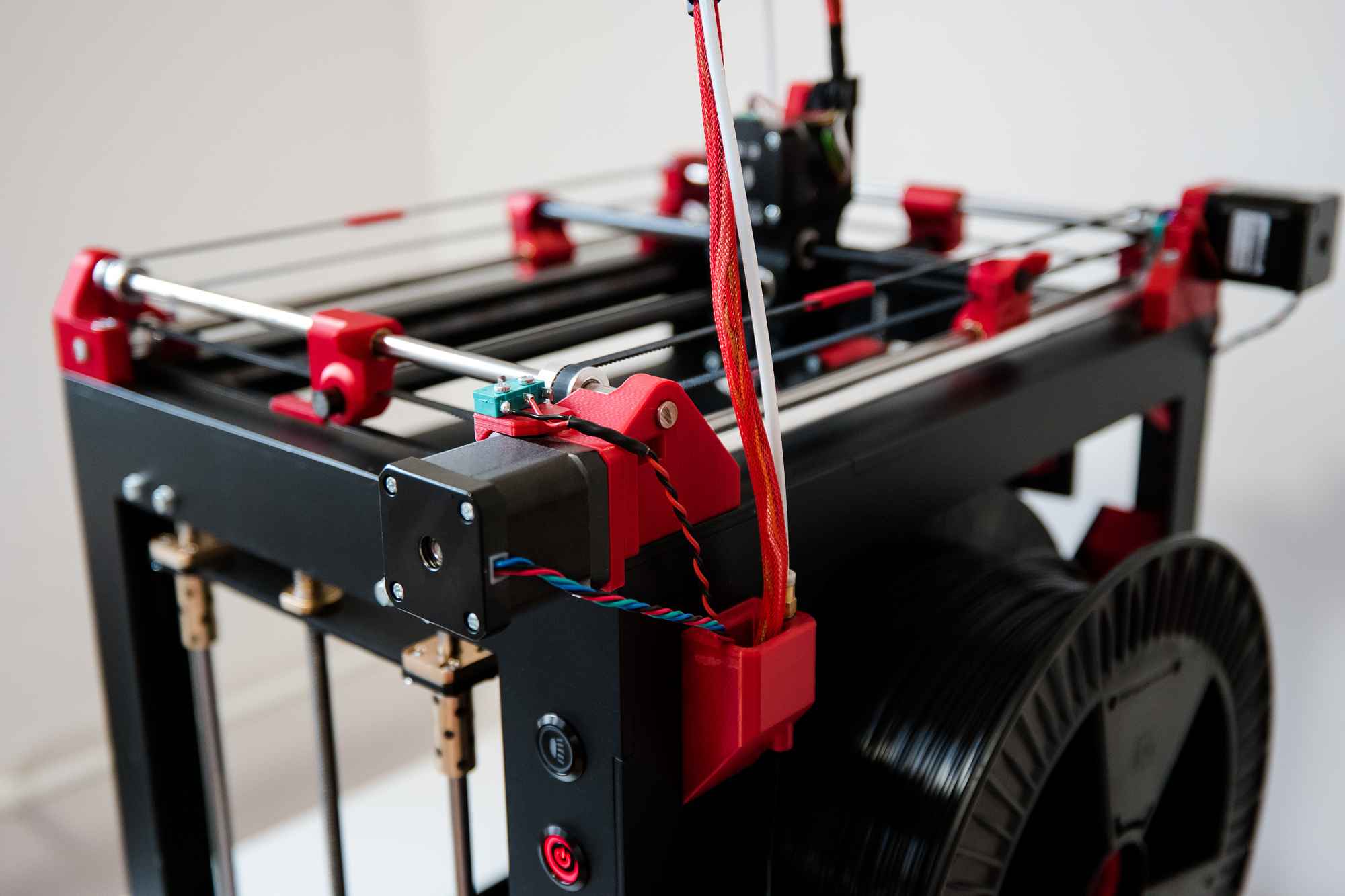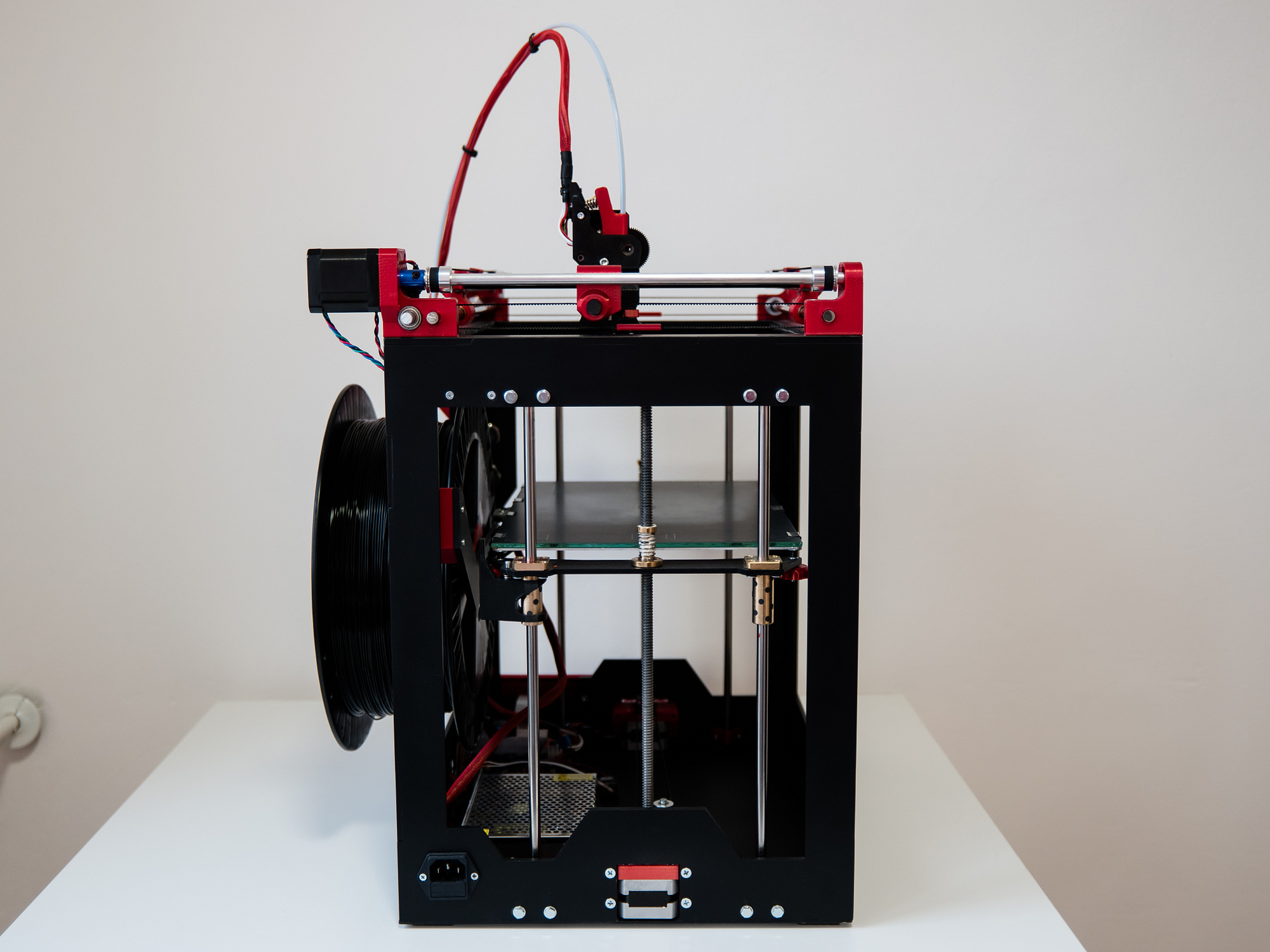 Zakrytování bočnic není problém, ostatně při návrhu jsem počítal s tím, že bych časem mohl zkusit tiskárnu částečně zakrytovat, tedy všechny bočnice. Jelikož je rám ze železa, nabízí se nacvakávací bočnice na magnetky. U špulky to bude trochu složitější, ale taky by to šlo. Horní strana je problém, to je ale u konstrukcí s podobným mechanismem vždy. Možná by ale stačily jen ty boky a vršek by mohl zůstat otevřený, no, třeba to časem vyzkouším.