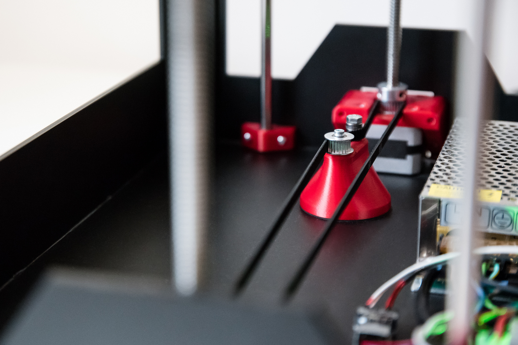 Díky. Spojení Z motorů je pojistka, aby se vůči sobě nerozjely. U Rebela se mi s trapézama občas stalo, že jeden z motorů ztratil nějaký ten mikrokrok a musel jsem furt štelovat první vrstvu. Poté, co jsem u Rebela oba motory spojil řemenem, mám první vrstvu vždycky stejnou a problémy přestaly. Takže u nové tiskárny jsem to zakomponoval hned při návrhu. Teoreticky by stačil jeden centrální motor na obě závitovky, ale měl jsem těchto motorů doma víc, nemám k nim využití tak jsem tam prdnul dva.