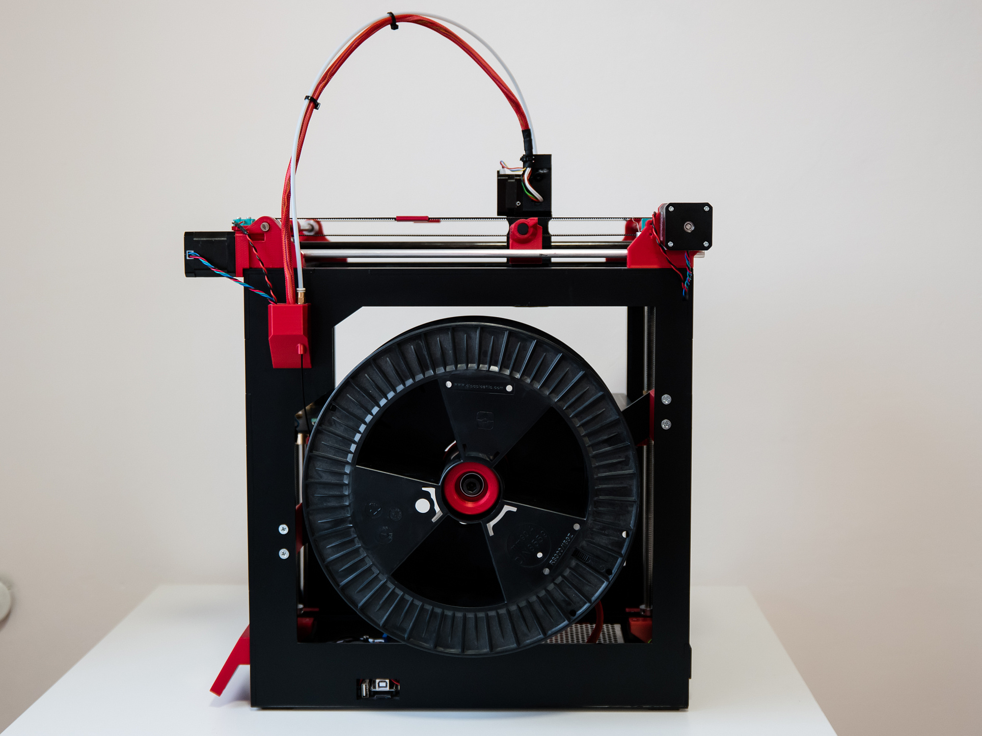 do tiskárny se vleze i velká 2kg špulka filamentu (na fotkách), nezabere přitom o moc víc místa, než klasická 1kg
