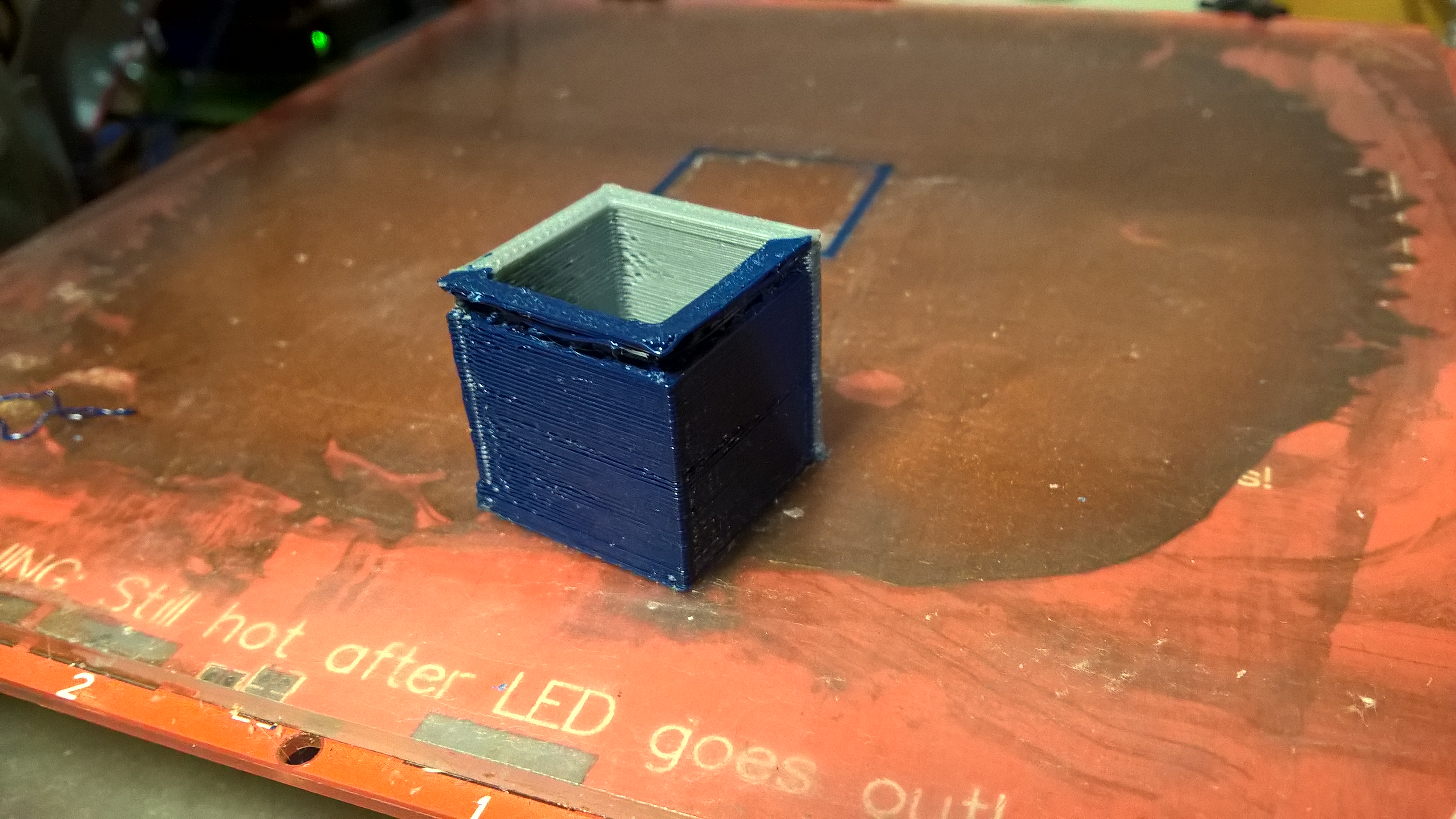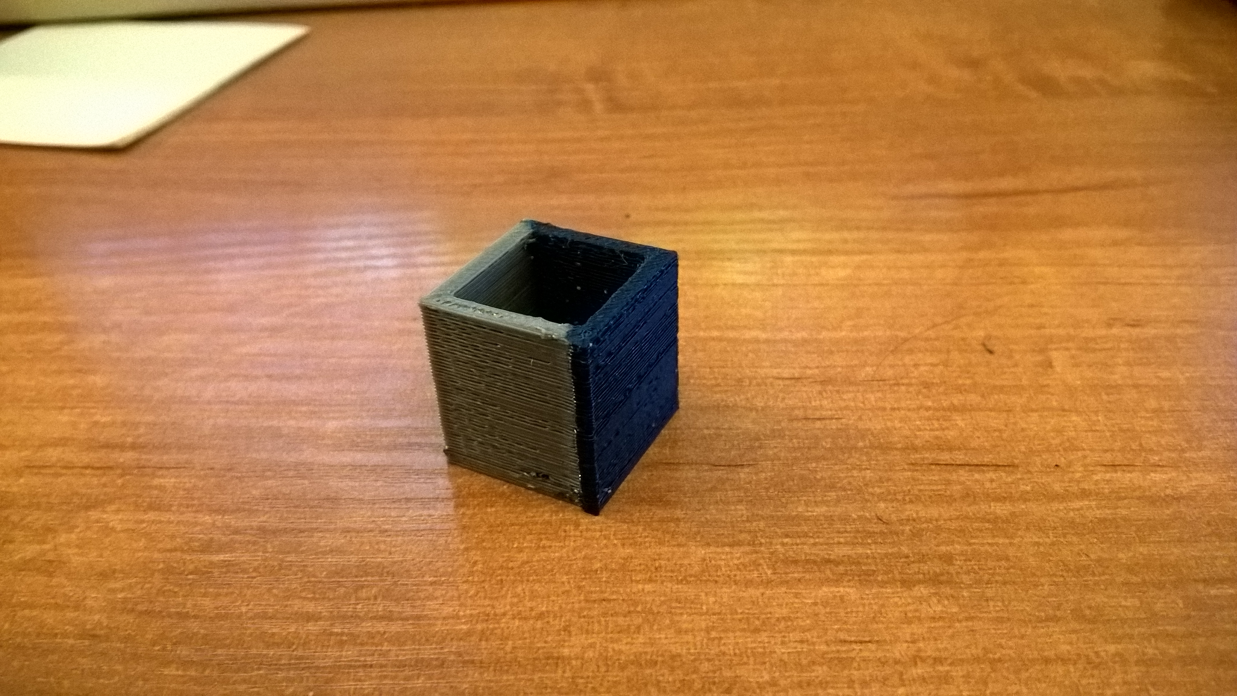 Takže jsem provedl první zkušební tisk s hrubím nastavením a bez ucpávek trysek, dopadlo to takto