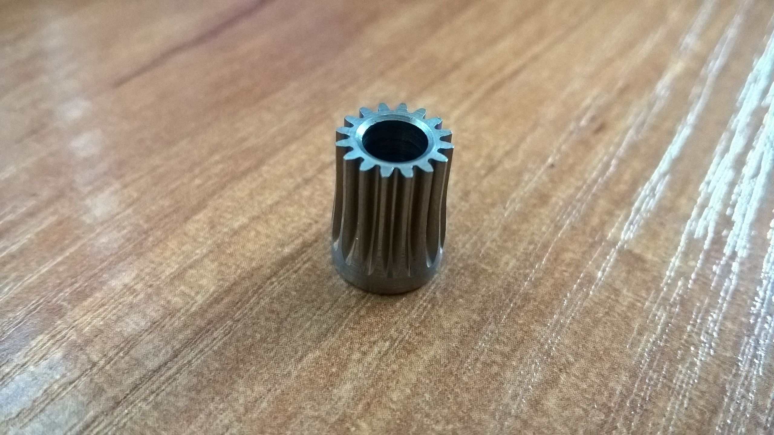 Taky jsem si objednal pastorek na motor s průměrem 9,2mm v místě zubů a zkusím ho místo zubatice (naostřím mu zuby). Má sice pouze 16 zubů, ale zase se budou zuby podle mého více zarývat do plastu, jelikož bude v jednom okamžiku působit na plast menší plocha (snad mi to stím servem nebude spíše fungovat jako skartovačka filamentu :D). Uvidíme