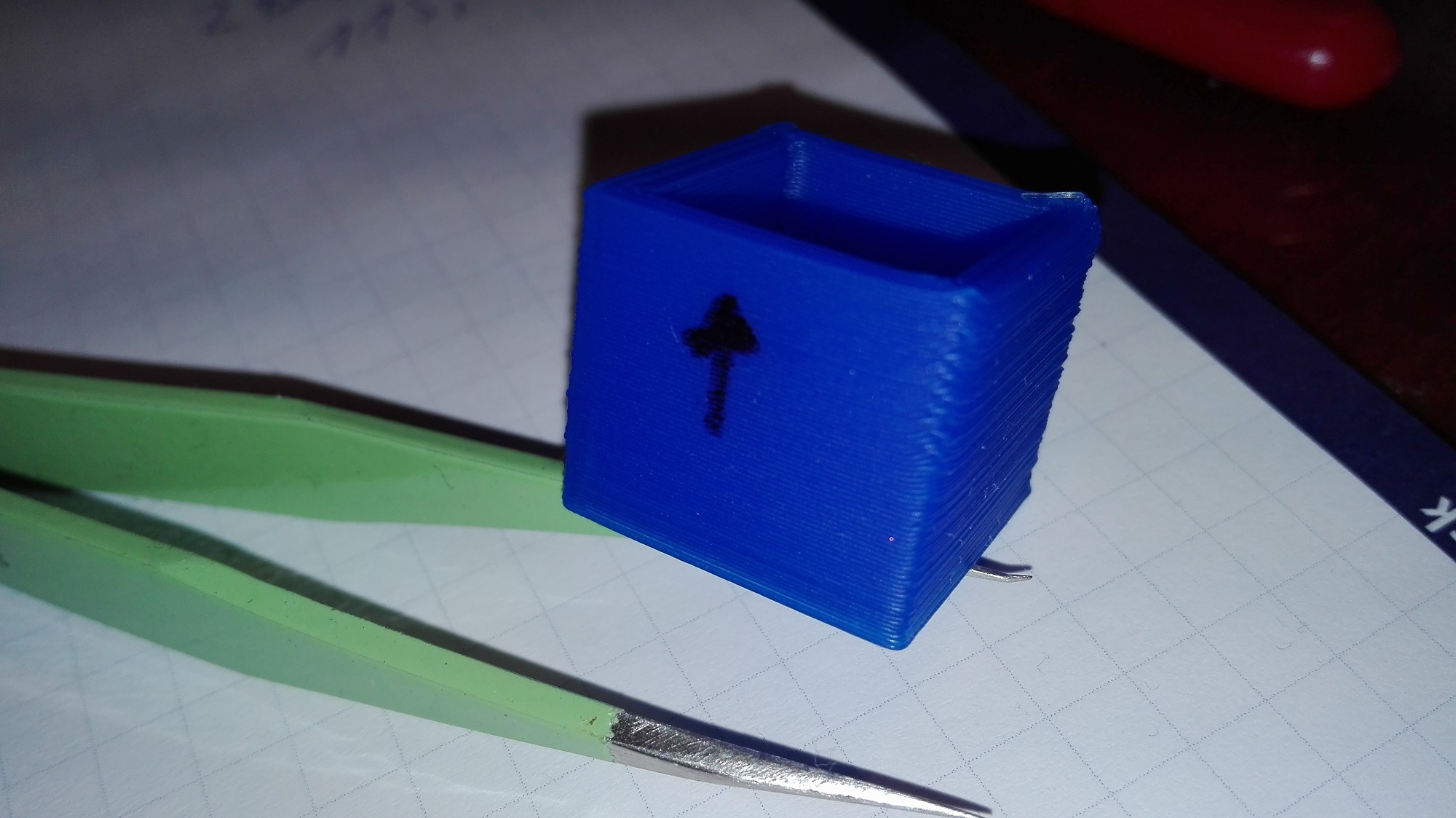 jasne sorry dufam ze sa bude dat z toho nieco vycitat. Sipka znaci ako to lezalo na bede pri pohlade spredu. Este k tomu motor na extruder a X osa je dost horuci (v porovnani s povodnym driverom) ma teplotu 51 stupnov na driveri je napetie 0,54V. Ostatne motory su celkom vlazne. Mam znizit napetie ? ci ta teplota je OK ? Material je PLA teplota 200/50, s tymi teplotami som bezne tlacil a tie hrany boli uplne krasne rovne, tryska 0,5 vrstva 0,3. Prve foto je z povodnymi drivermi ta plocha dosticka.