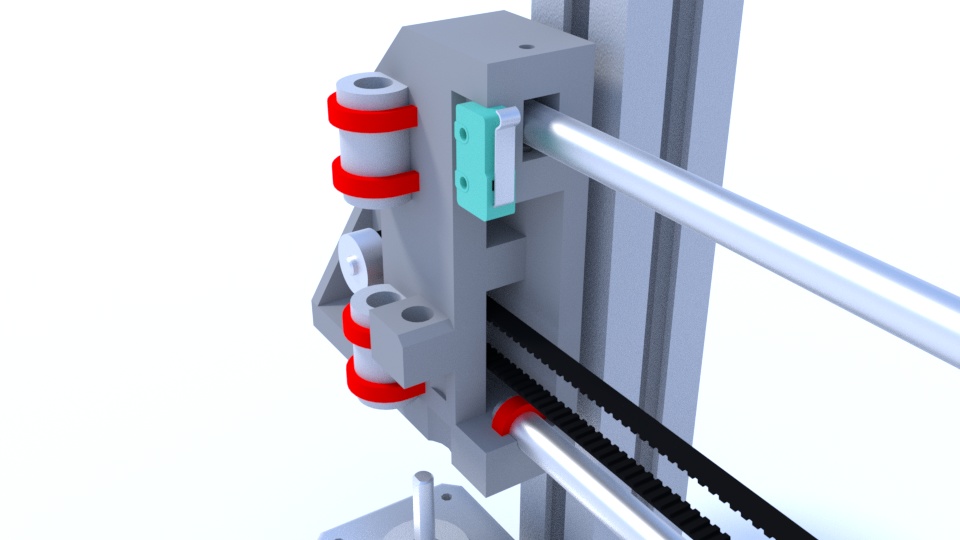 Co se týče řetězů, mám je v plánu. Co se týče výměny hlavy, já jsem uvažoval to, že se jenom vysunou lineární ložiska, odpojí se řemen a kabelový řetěz a sundá se celý pojezd se vším a může se nasadit jiný pojezd uzpůsobený pro laser nebo brusku. Jinak STEP neposkytnu, jelikož celé to dělám v Blenderu 3D a to je polygonální modelování, ne NURBS plochy.