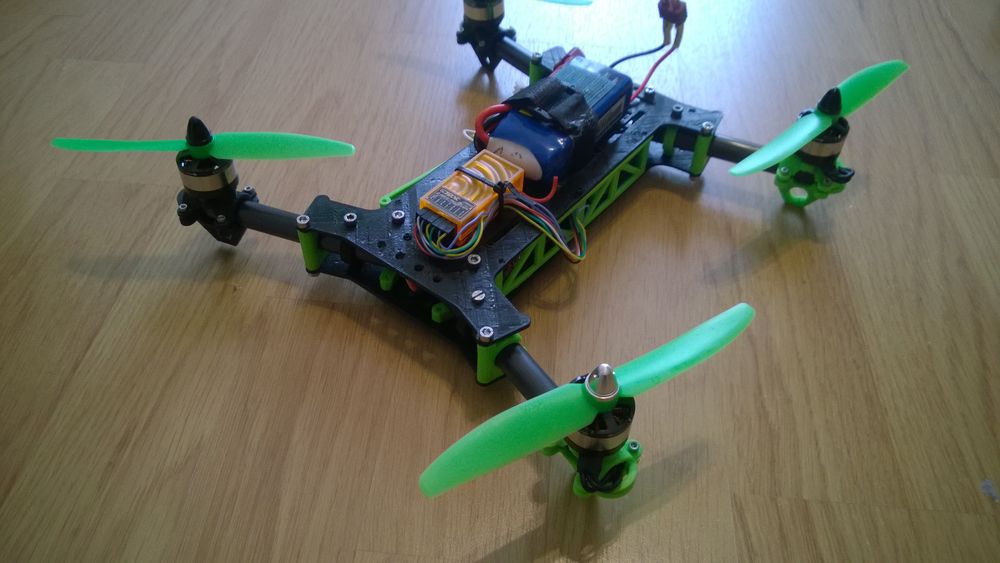 nedalo mě to a pustil jsem se do další koptéry. po pár letech s tricoptérou jsem zjistil že na to nemám ruce tak jsem je poslal dál. po roce jsem zase dostal chuť to vyzkoušet. moc se mě libí ramena z trubky ... bez FPV mě letová hmotnost vyšla na 402g