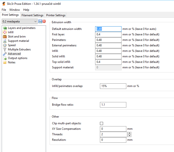 Nastavení Slic3ru mám nyní "made by medapeta" a docela mi to vyhovuje.