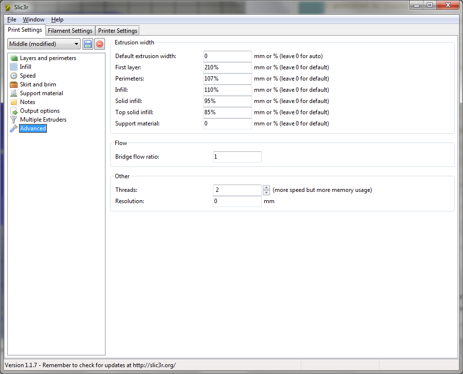 Moje nastavení Slic3ru inspirováno videem z odkazu zde na foru