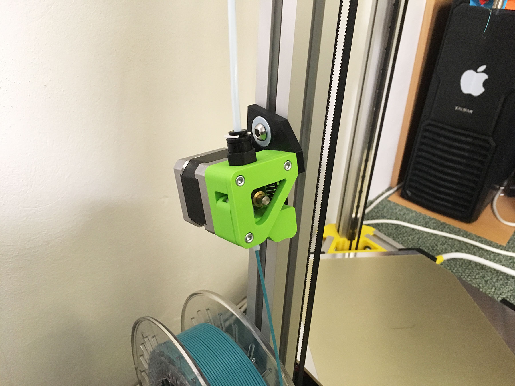 Bezva kompaktní extruder. :o Ještě kdyby někdo vymyslel a předělal přítlak na extruderu ala Průša. To mačkání přes šroubky je docela protivný. :( Ale mě nic nenapadá. Máš pěknej stroj, tiše závidím. Ať to funguje.