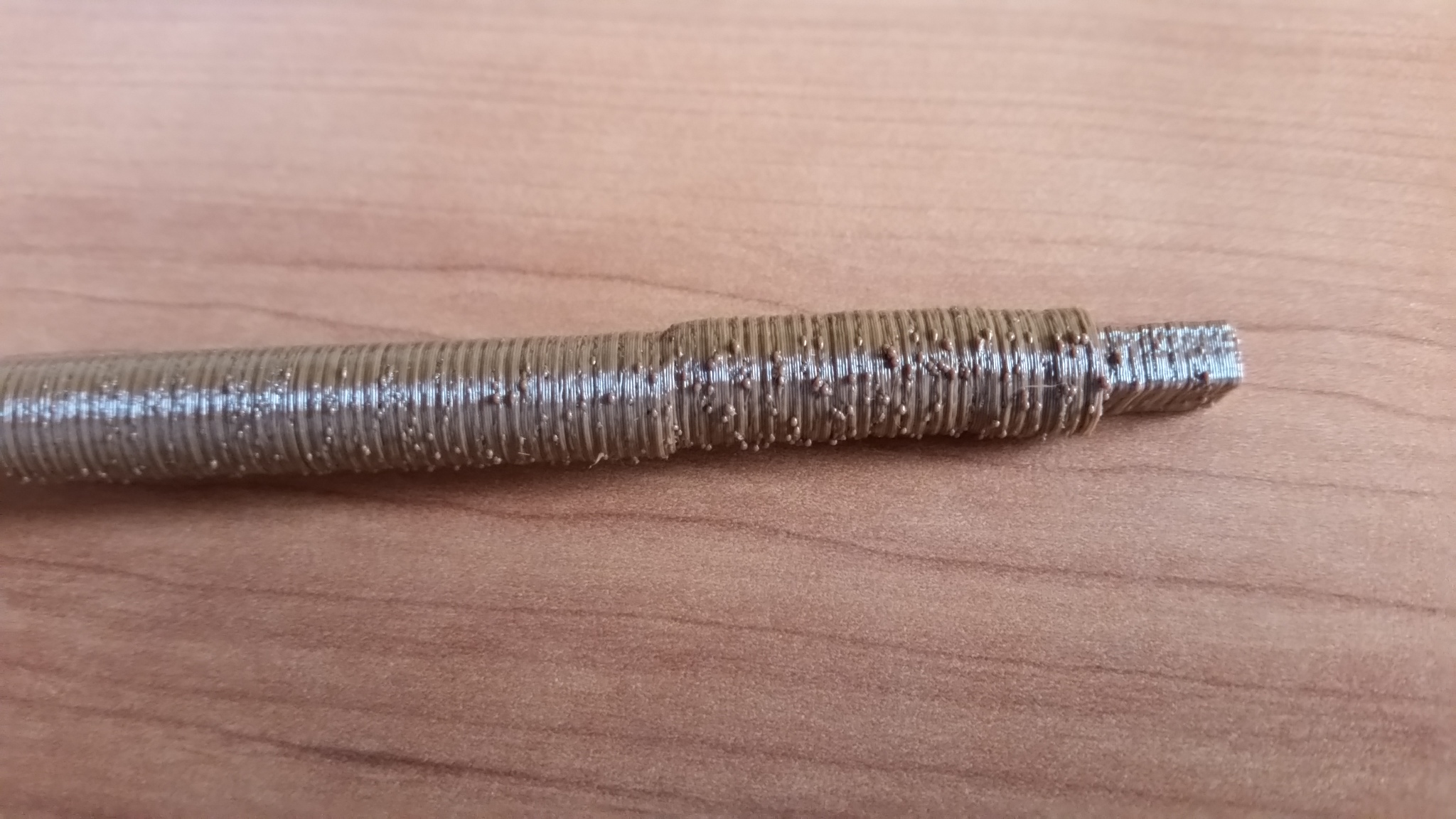 Ohnutá závitovka uchycená nahoře i dole bude nejspíš zodpovědná za ty 2mm vlnky (stoupání tyče) po celé výšce.
