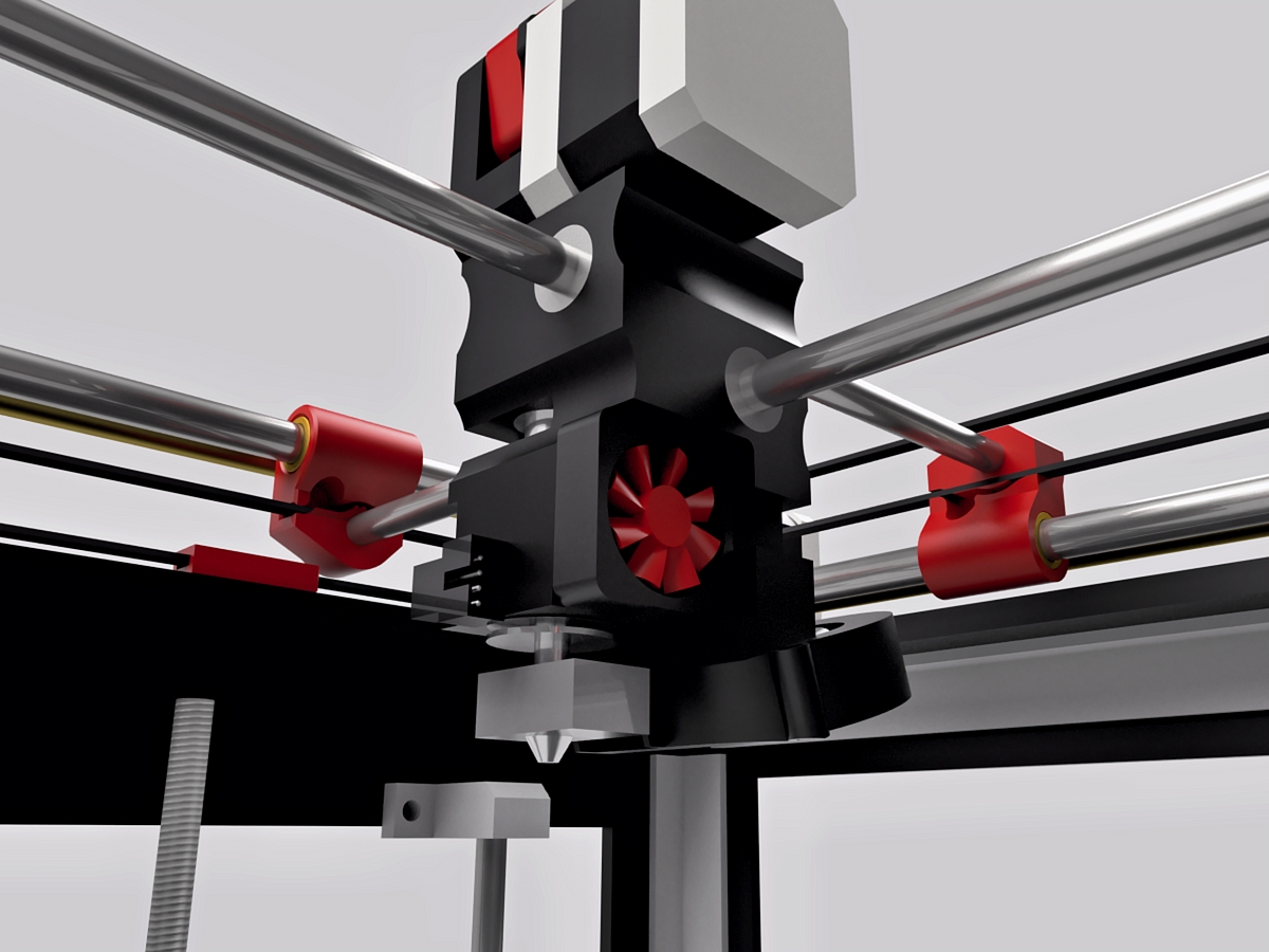 Jedná se o takovou variaci na ultimaker, jejich mechanismus os XY mi přijde nejlepší, ale nelíbí se mi pohon řemenic přes pojezdové tyče. Mechanismus jsem tedy upravil, aby pojezdové tyče byly napevno.
