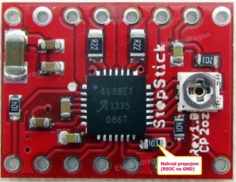 Ještě mě napadá, že by to mohlo být zdrojem, používám všude Corsa 24V 400W stažený na 22V. Nicméně to opět není novinka, mám je už dlouho. Možná za to může to snížené napětí na 22V, nejsem si jistý, jestli jsem tam dříve neměl o nějakou tu desetinku voltu nastaveno méně nebo více. Pří snaze seštelovat zdroje na stejnou hodnotu, jsem možná trefil nějakou záhadně problematickou hodnotu, co se A4988 nelíbí. Je to asi nesmysl, ale už mě fakt nic jiného nenapadá.