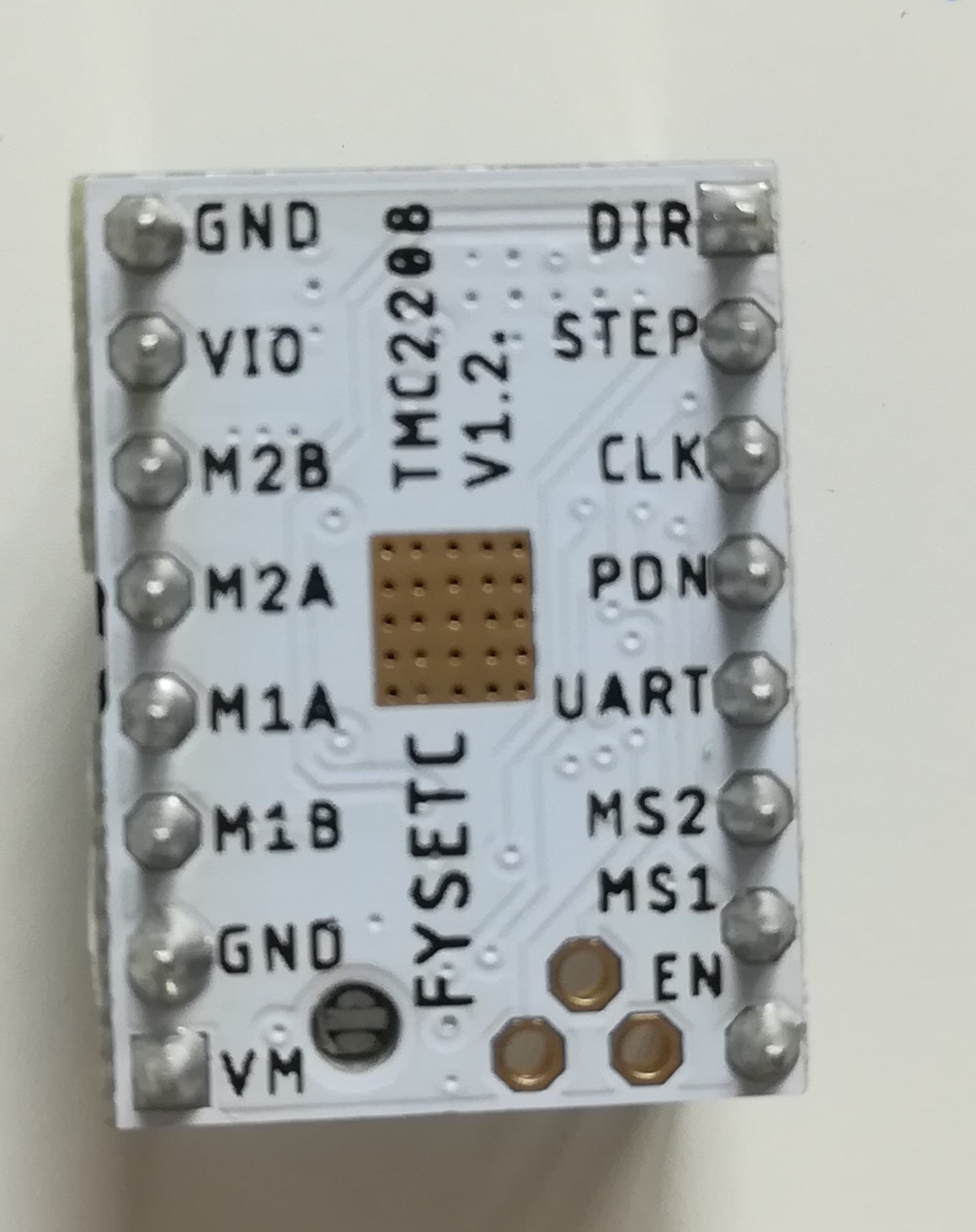 chtěl bych se zeptat, zda je potřeba u fysetc tmc2208 v1.2 spájet nějaké konektory, aby bylo možné zapnout uart. Na displeji mi svítí tmc connection error, ale osy šlapou jak mají. Výtisky jsou velice zvláštní a to jsem is pohrál už i s marlinem 2.0.5 a dokonce i nastavil slicer. Přikládám obrázky driverů, protože vůbec nevypadá má 1.2 jako 1.2, kterou tu někdo postoval.