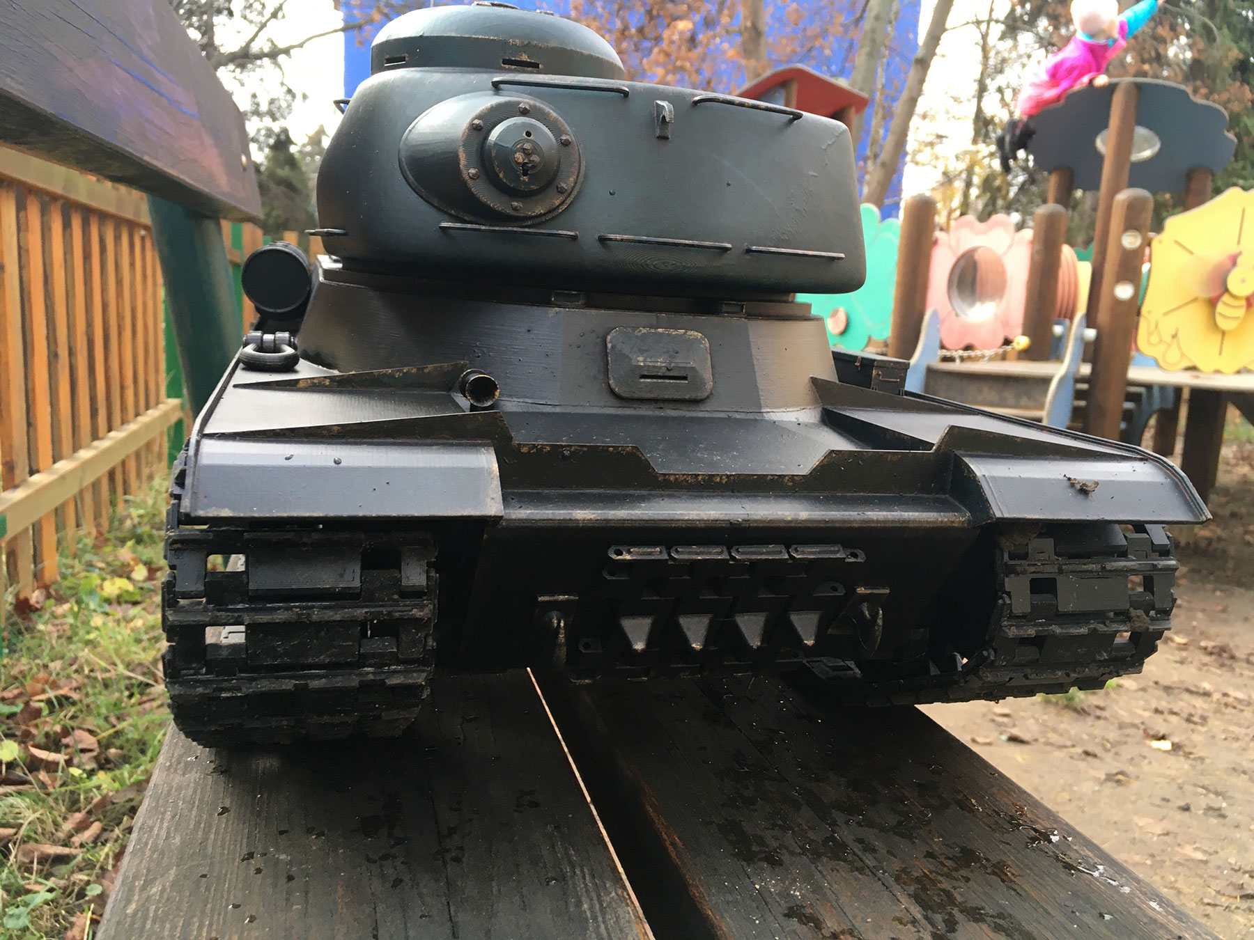 Pořádný venkovní test na dětském hřišti tank zvládl na výbornou