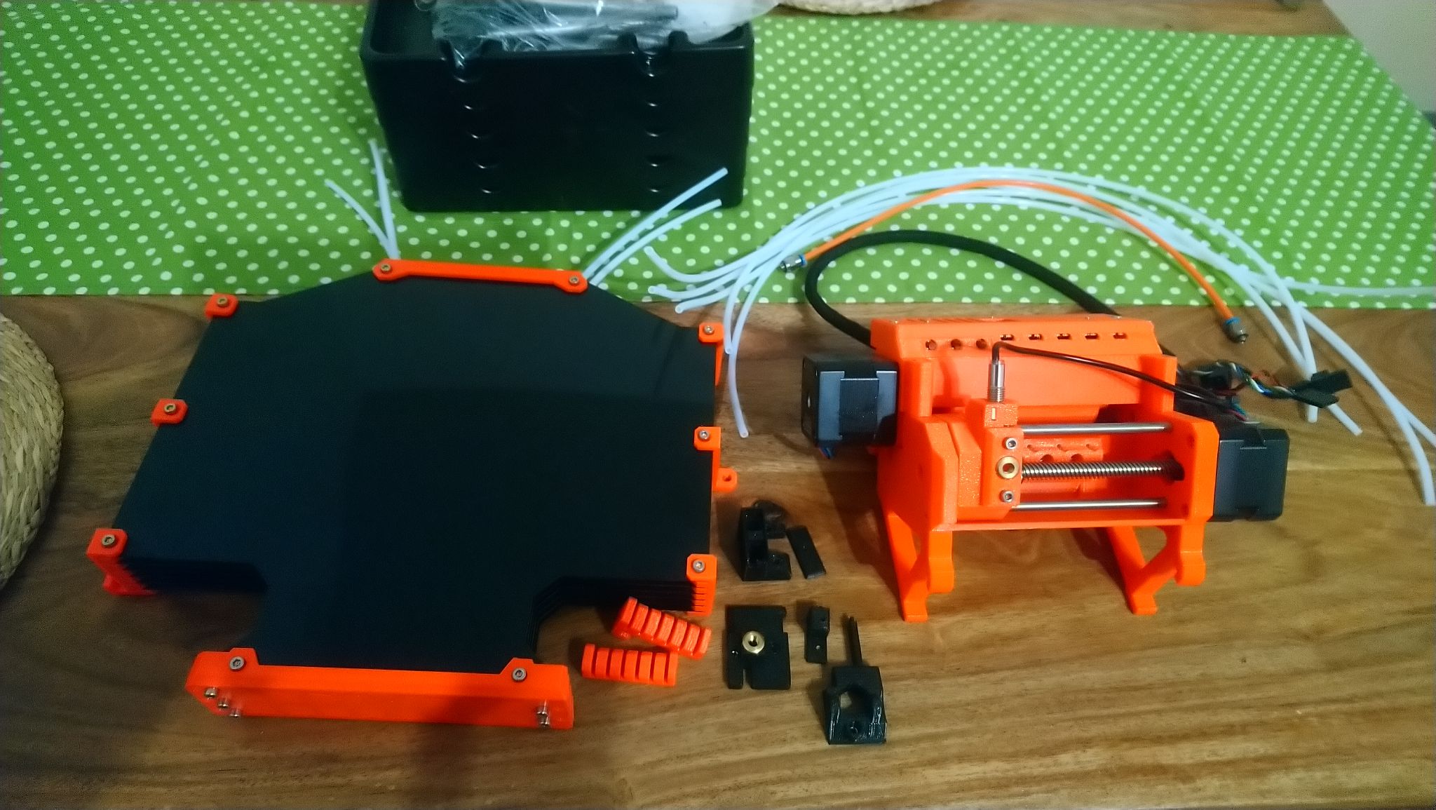 Prodám multi material jednotku Průša MMU2S - kompletně poskládaná a funkční. K tomu zásobník na filament a držáky cívek.