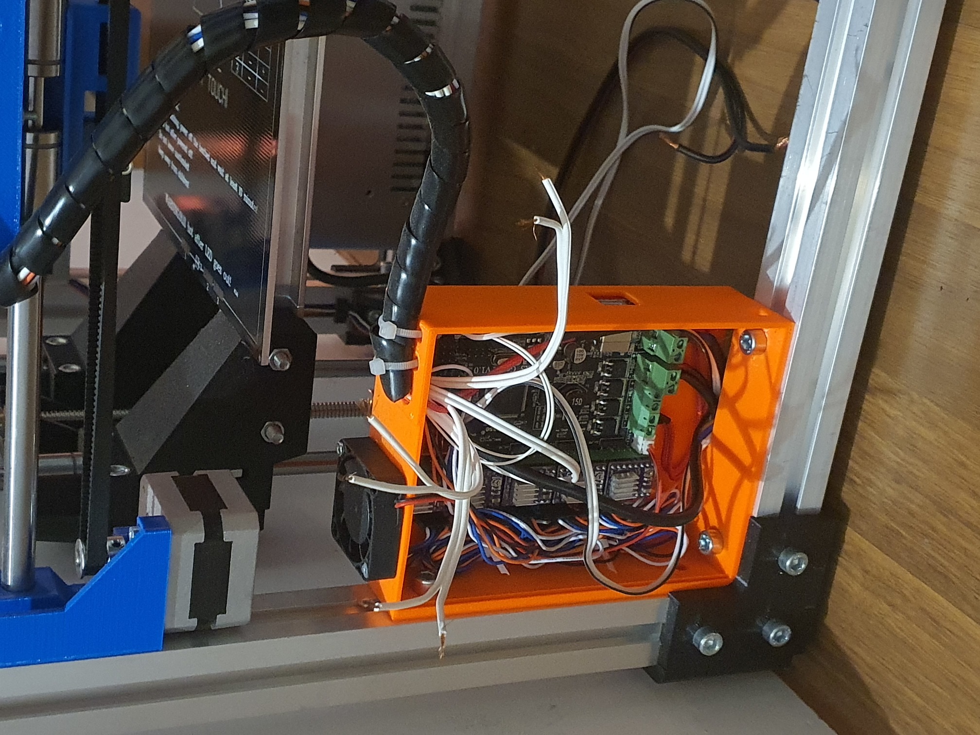 Nicméně, je to v podstatě hotové a kompletní, stačí zapojit koncáky do desky a dodělat stolek. Díly jsem tiskl já, je to již dávno, ale myslím, že jsem nešetřil. Vše je z PETG, krom Extuderu a ofuku, to je ABS.
