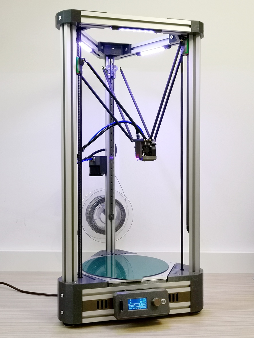 Měl jsem jasnou představu co chci. Tiskový průměr podložky alespoň 260mm a výšku tisku přes 300mm. Kompletní elektronika včetně zdroje integrovaná do základny delty, lineární vedení a magnetická tisková podložka. To byly základní požadavky. Začal jsem náčrtem základní geometrie a výběrem všech potřebných komponent. Následně jsem se pustil do konstrukce. A zde je výsledek - 3DAP Delta :lol: