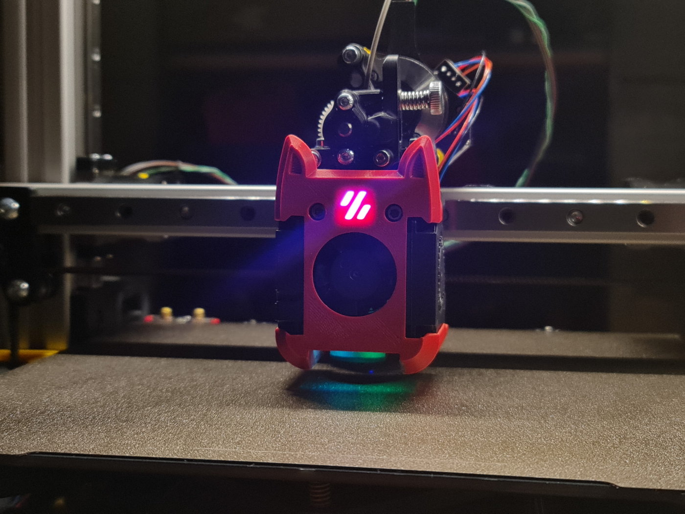 Co se konfiguraku tyce, do ted jsem nevedel, ze tento existuje :-) Bral jsem STLka primo z chirpiho githubu, nejspis nejakou posledni verzi, nicmene ty kocici usi tam jsou z catcowl, to je asi jediny neorigo dil... byt stale k mani na tom stejnem github repository.