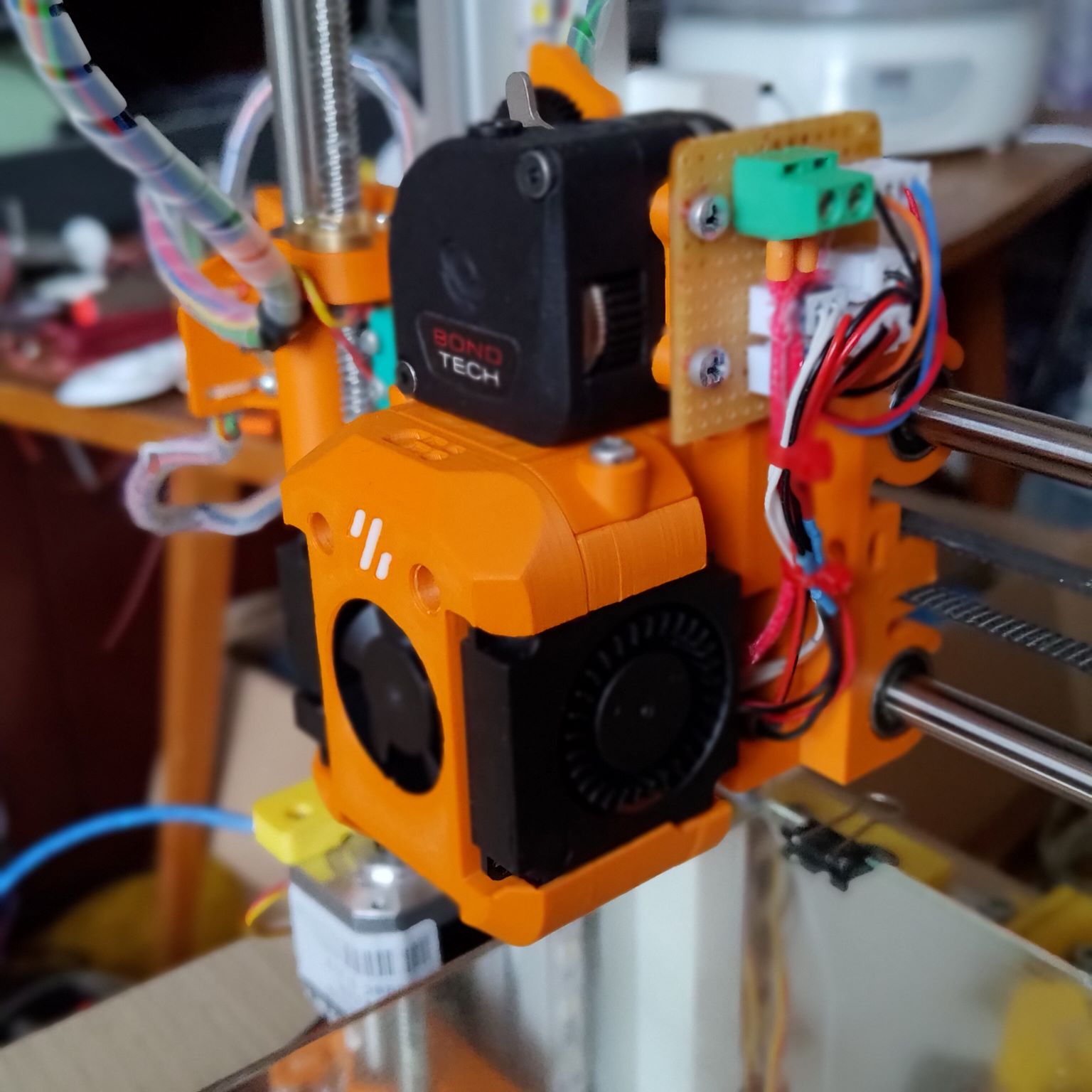 Co do navrhu novych dilu, na toolhead to byl uchyt na Prusa-klon voziku plus trochu upraveny vozik a ostatni veci jako Y motor mount, napinak Y, upevneni 2020 profilu k 3030 profilum, vsechno jsem si delal sam.