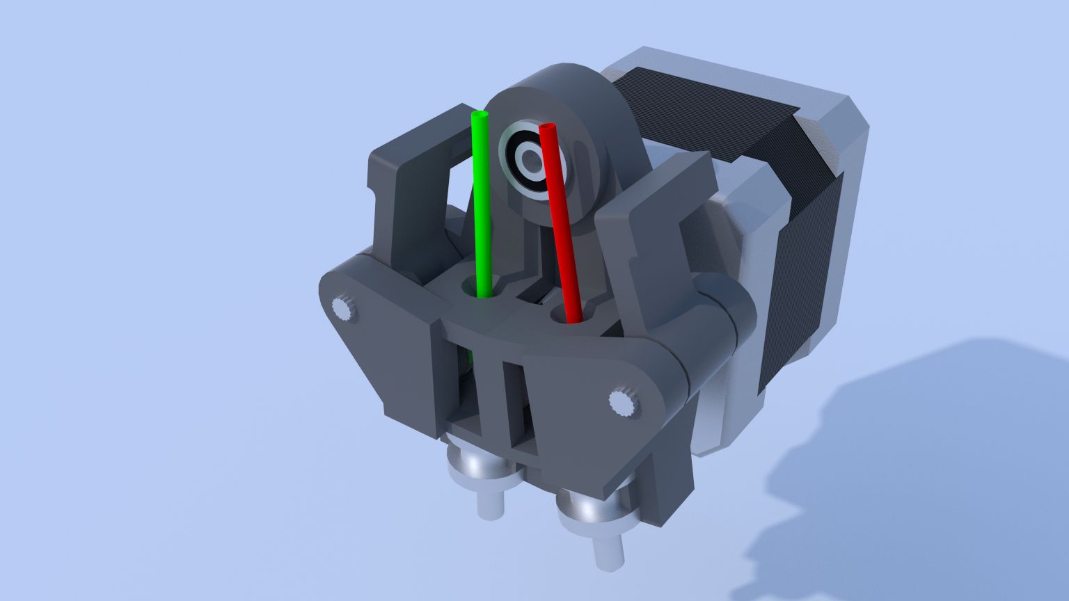 Všechny zdravím. Zakládám toto nové téma, jelikož se snažím navrhnout duální extruder s jedním motorem nema 17 a ovládacím servomotorem s momentem alespoň 3kg/cm pro naklápění. Rozhodl jsem se pro to, jelikož v budoucnu si chci svého rebela předělat právě na dualko, ale běžné provedení dualek se mi moc nezamlouvá (dva motory a narážení trysky, která zrovna netiskne, do hran tištěného modelu a zanechávání kousků druhého filamentu na modelu). Proto jsem začal navrhovat můj duální extruder.