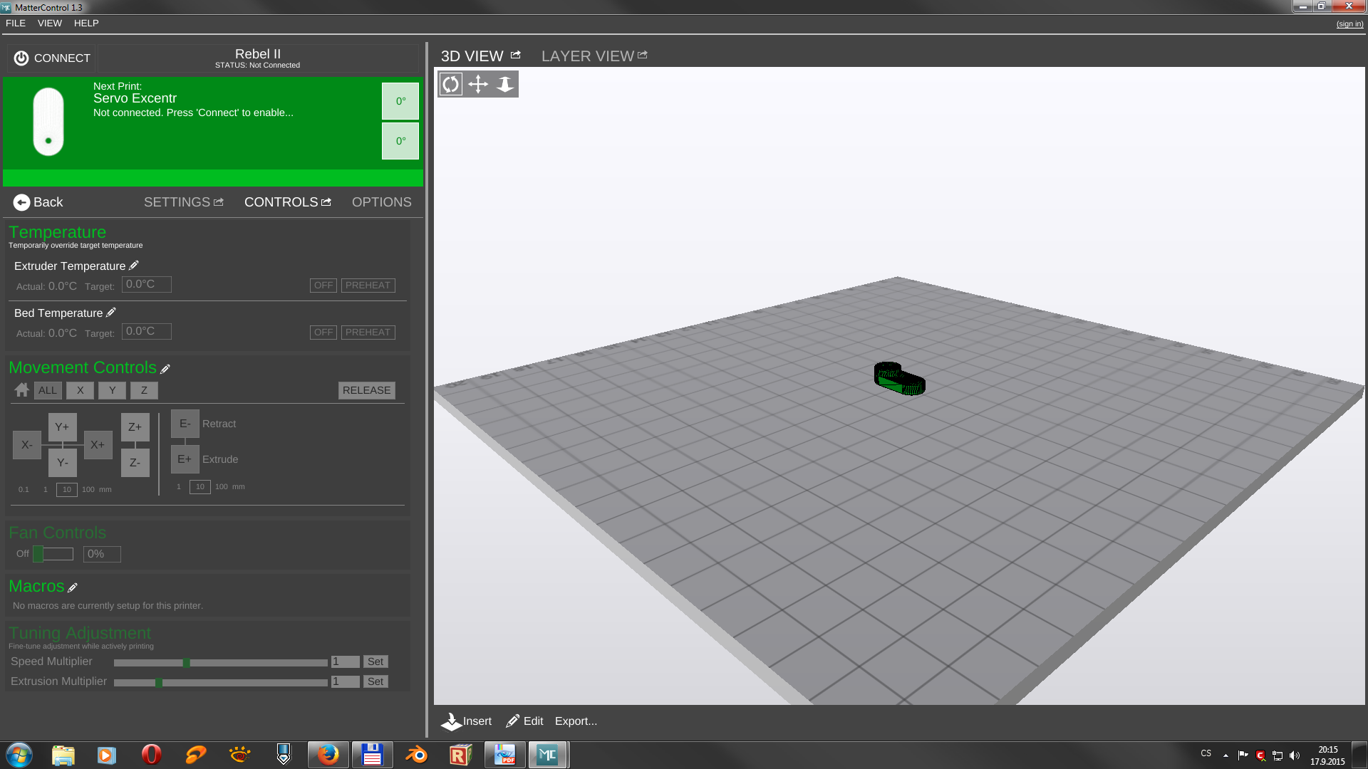 Teďka už k samotnému MatterControleru verze 1.3. Na první pohled je prostředí docela pěkné a přehledně udělané jakmile se do něho dostanete.