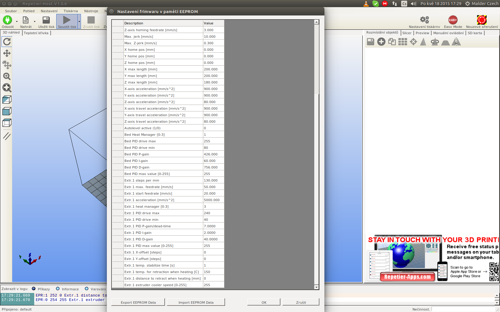 Zdravim mam tiez problem s hotbedom, problem je v rom ze ked zapnem uplne studenu tlaciaren termistor mi ukazuje 1,9 az 3 stupne a ked dam vyhriat podlozku vyhrieva ju normalneale k 100 stupnom sa az nedostane. zacalo to robit cca pred troma dnami dovtedy bola teplota po zapnuti normalna cca 20 stupnov. akoby sa ta stupnica posunula o cca 20 stupnov dole. Neviete kde moze byt problem ? Myslel som si ze to je v tom ze pouzivam atx zdroj ale uz mam original z brlohu.sk a problem pretrvava
