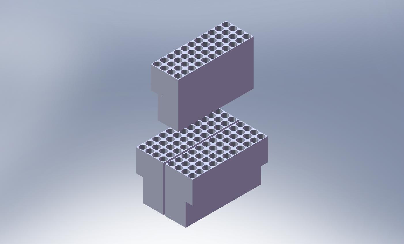 V Rhinu je nakreslen kvádřík s průchozí dírou a pak je poskládán vedle sebe a nad sebou, sériovo paralelní zapojení Lion baterií 16850 v plastových skládacích pouzdrech. 11 paralelně, 7 v sérii. Každý ten kvádřík je samostatný import ale nejde na něm nic změnit. Je to moc veliký, abych to sem dal v STP, přes 3 MB. Takže jen JPG pro představu.